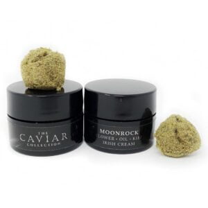 Appearance: Each moon rock is a visual treat with vibrant green buds coated in a sticky layer of amber hachage oil and dusted with a sparkling layer of golden kief. The dense, nugget-like structures are a testament to their high-quality composition.